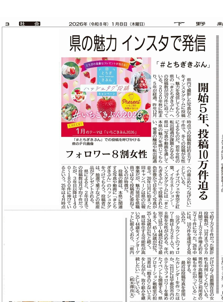 弊社が事務局として運用を担当させていただいている、とちぎきぶん公式Instagramアカウント「@tochigi_kibun」をご紹介いただきました。